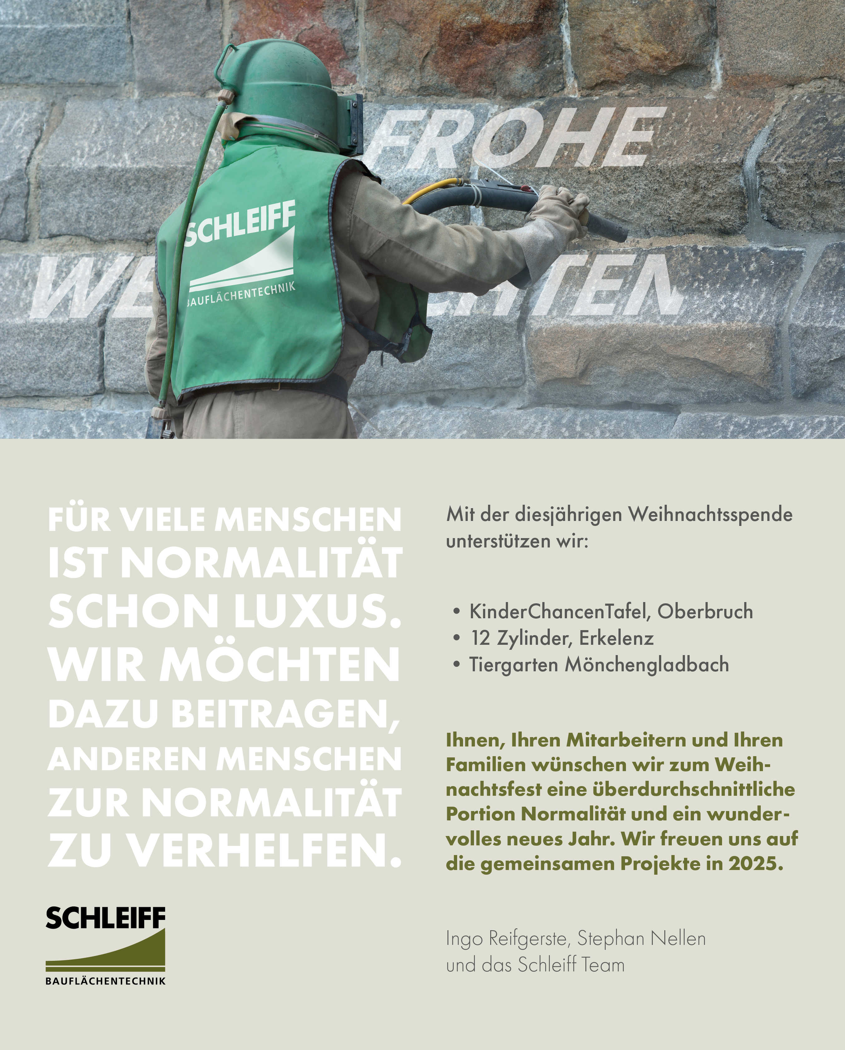 Das Team von Schleiff wünscht allen Kunden und Geschäftspartnern fröhliche und entspannte Weihnachtsfeiertage sowie viel Glück, Gesundheit und Erfolg im neuen Jahr. Unser Unternehmen bleibt vom 24.12. bis zum 04.01. geschlossen. Ab dem 07.01. sind wir wieder für Sie im Einsatz.
