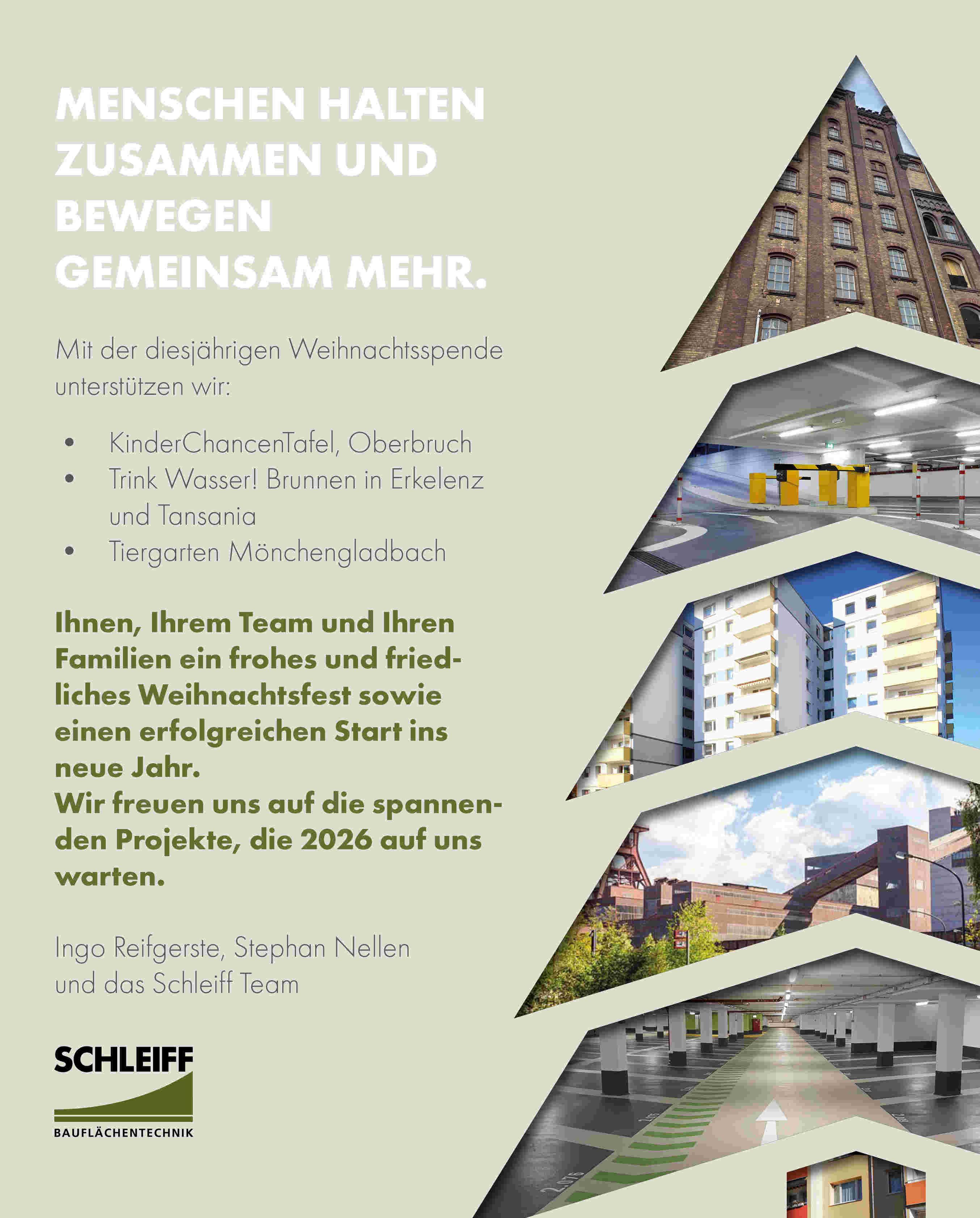 Zum 1. Dezember 2025 wird Marco Lennartz Gesamtprokura für die Schleiff Bauflächentechnik GmbH & Co. KG sowie die Schleiff Denkmalentwicklung GmbH & Co. KG erteilt.